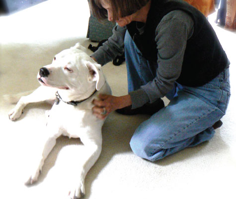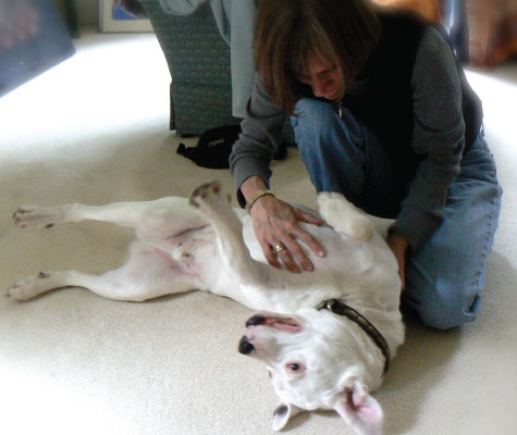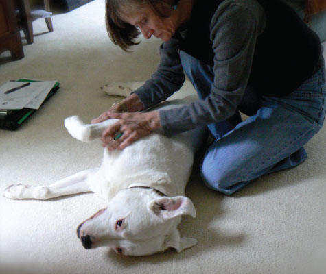 3. Jimmy’s in ecstasy! Wide open to Jennifer, a happy, happy puppy. She keeps a quiet, thorough rhythm, just working with intent and gentle caring, all over his body, picking up on his sore spots, maintaining a calm and easy presence.
